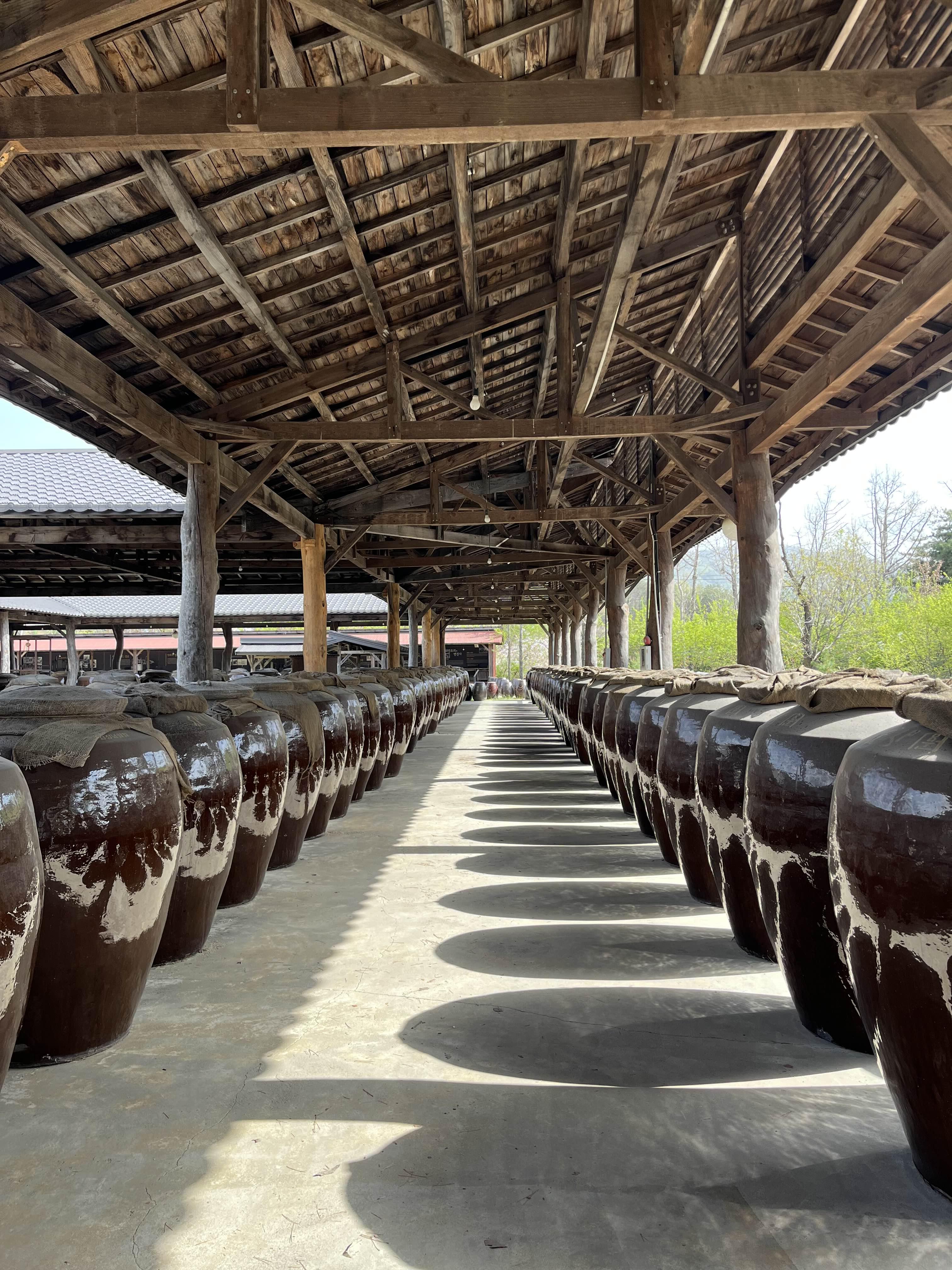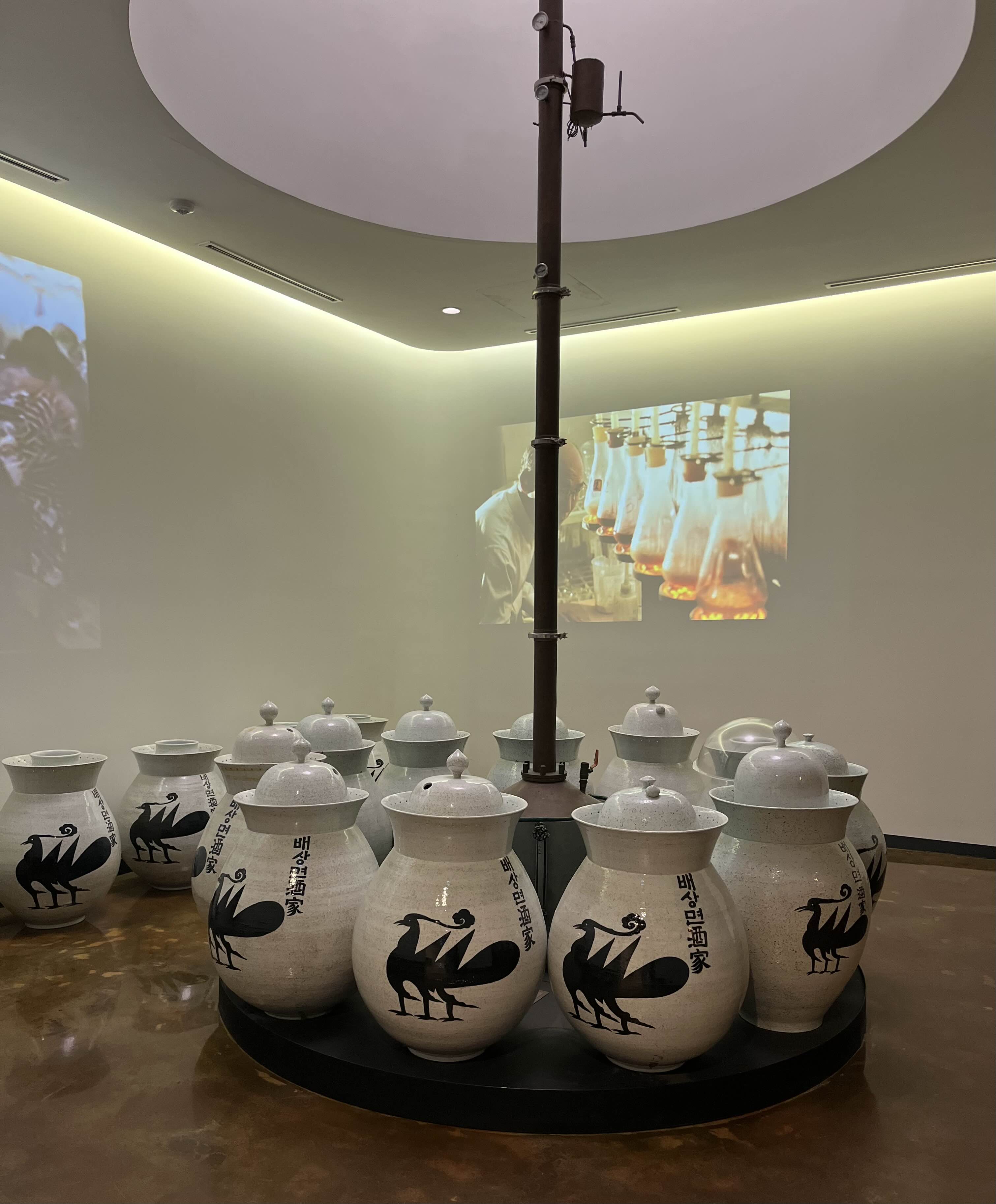 여러 개의 ㅁ자 복도를 둘러싼 항아리들은 술독. 이 안에는 ‘배상면주가’에서 담근 여러 술들이 실제로 담겨있다. 술독을 그냥 배열한 게 아니라 ㅁ자 주변으로만 배치해 가운데를 정원으로 만든, 한옥 특유의 개방감을 이 공간에 적용해 더욱 정답게 느껴졌다.