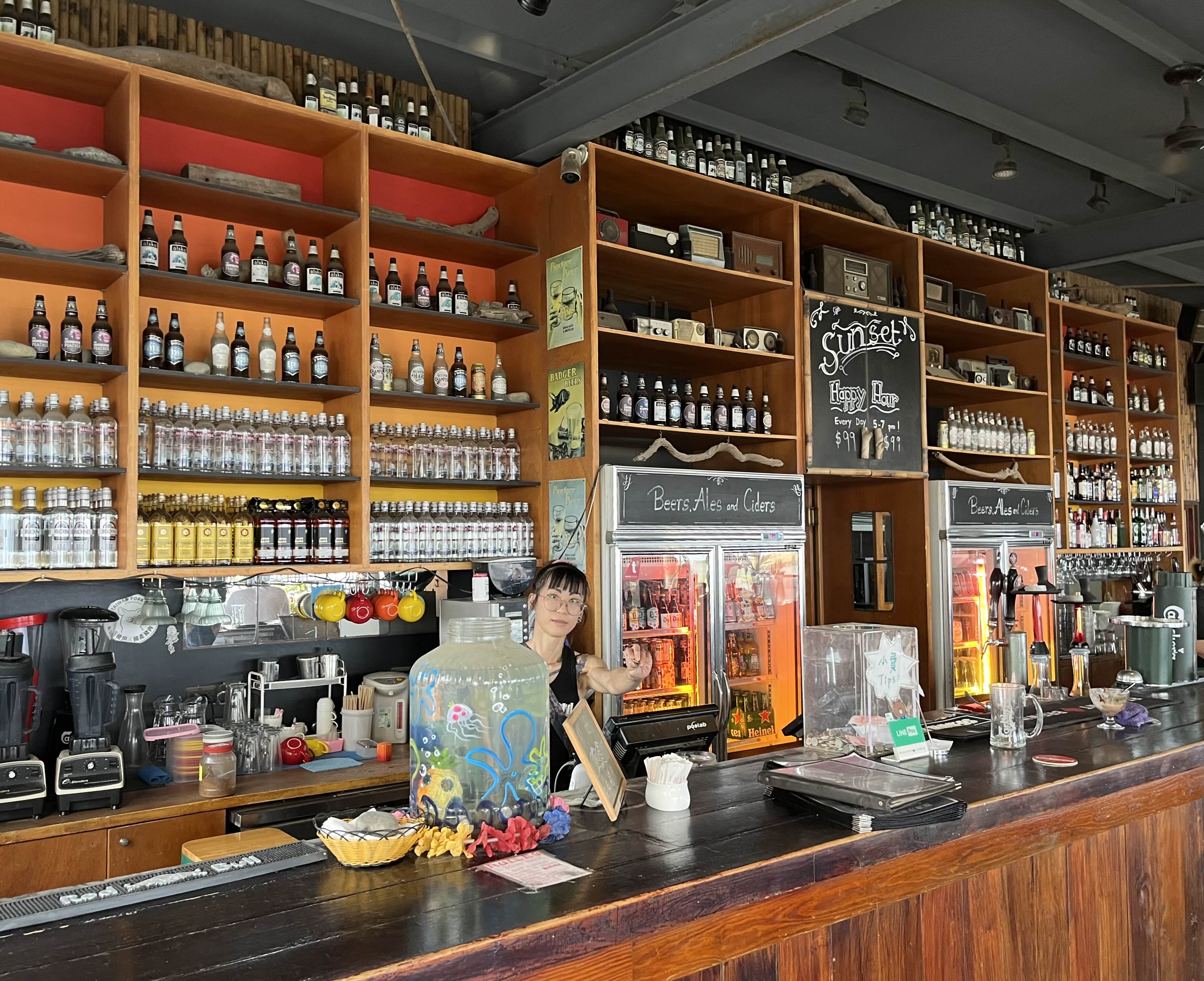 이 직원과 더 친해지고 이 바의 분위기를 온전히 즐기고 싶었지만, 갑작스러운 미국 친구와의 만남으로 해피아워를 즐길 수 없었다. (생각하면 다행이다. 만약 그녀가 없었다면 앉은뱅이가 되어 치진섬을 못나왔을 수도...^^)