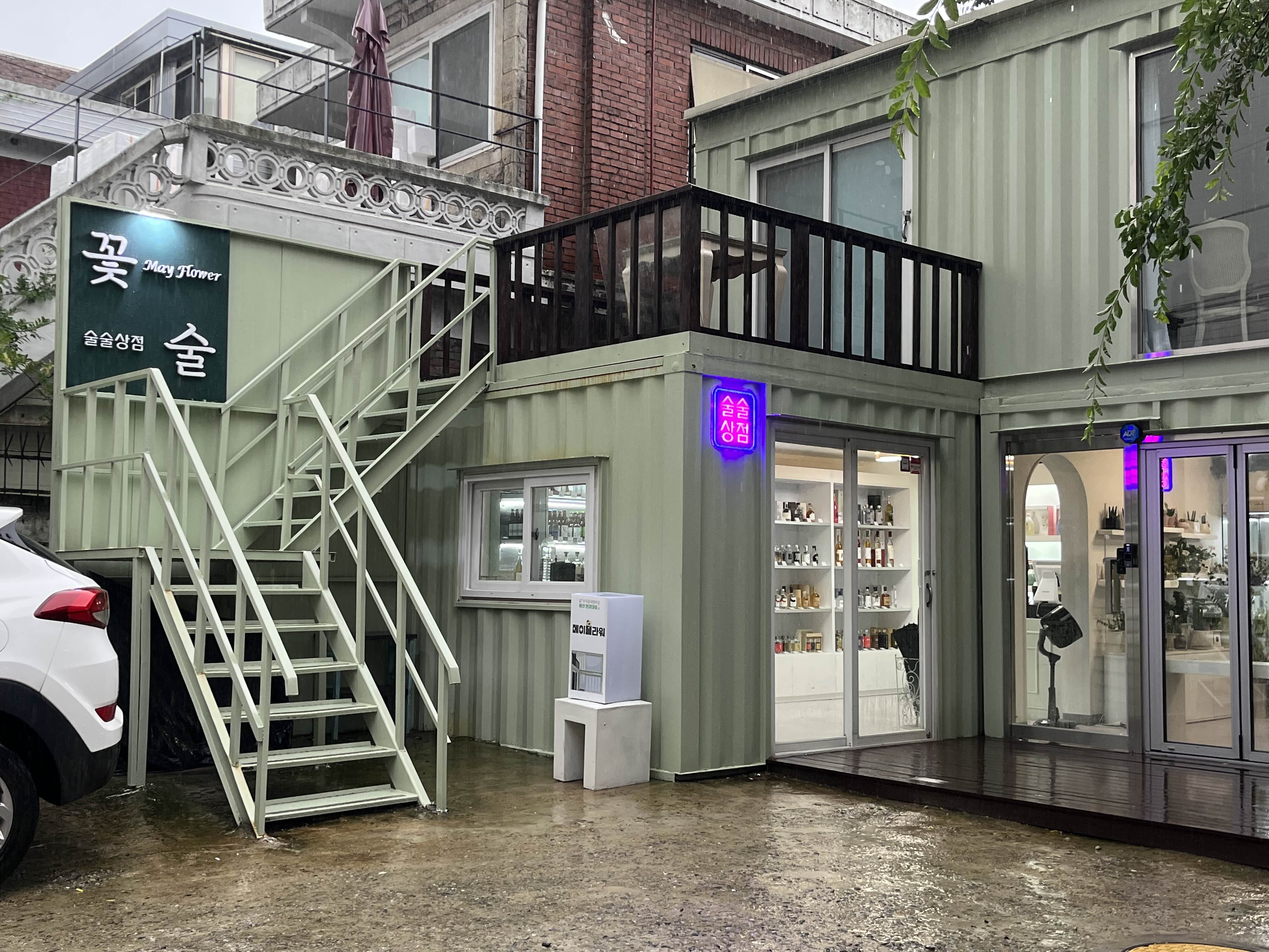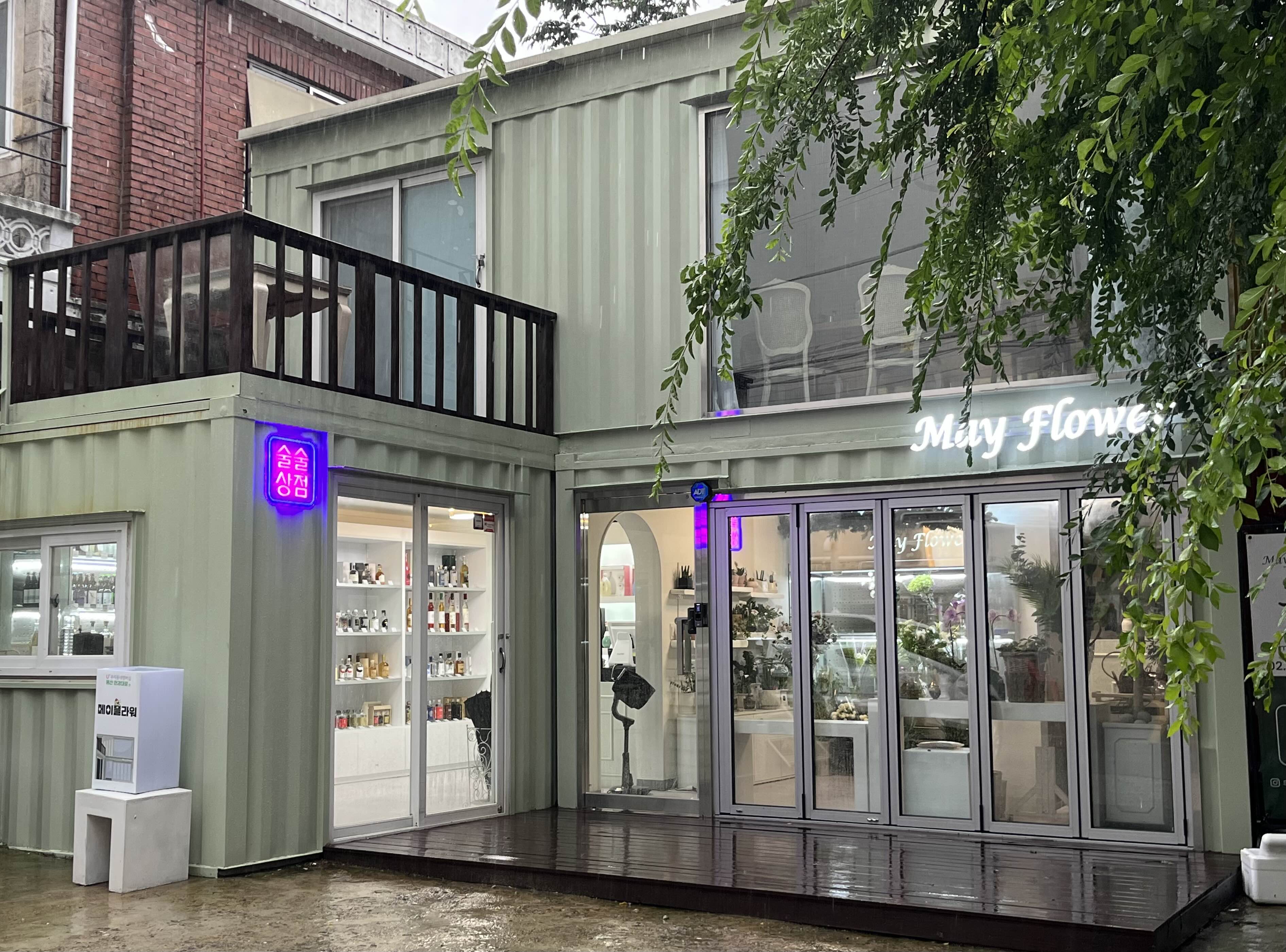 꽃집과 함께하고 있으며, 가건물 색도 민트색이라 용산보다는 성수동 느낌이 더 뭍어난다