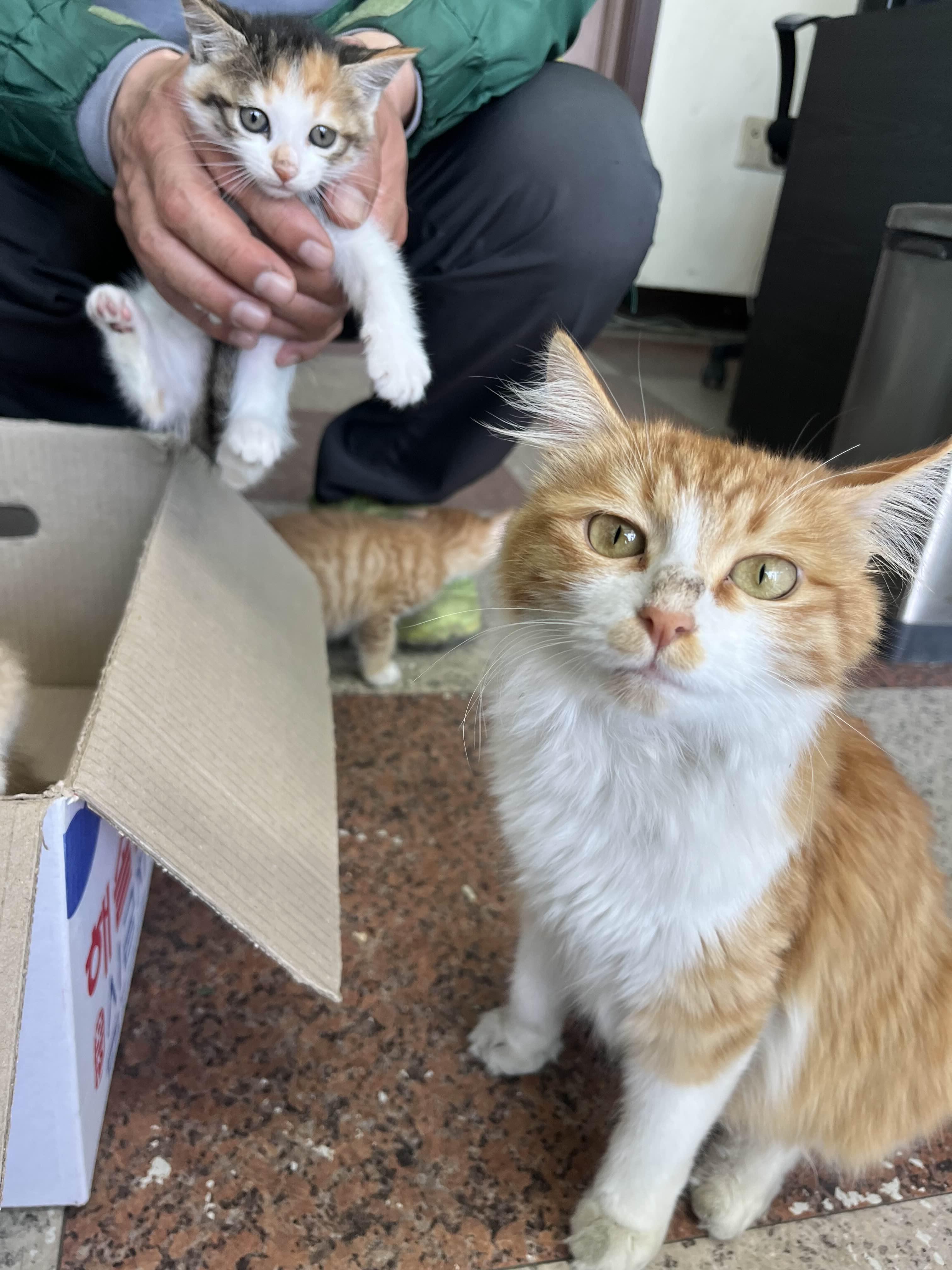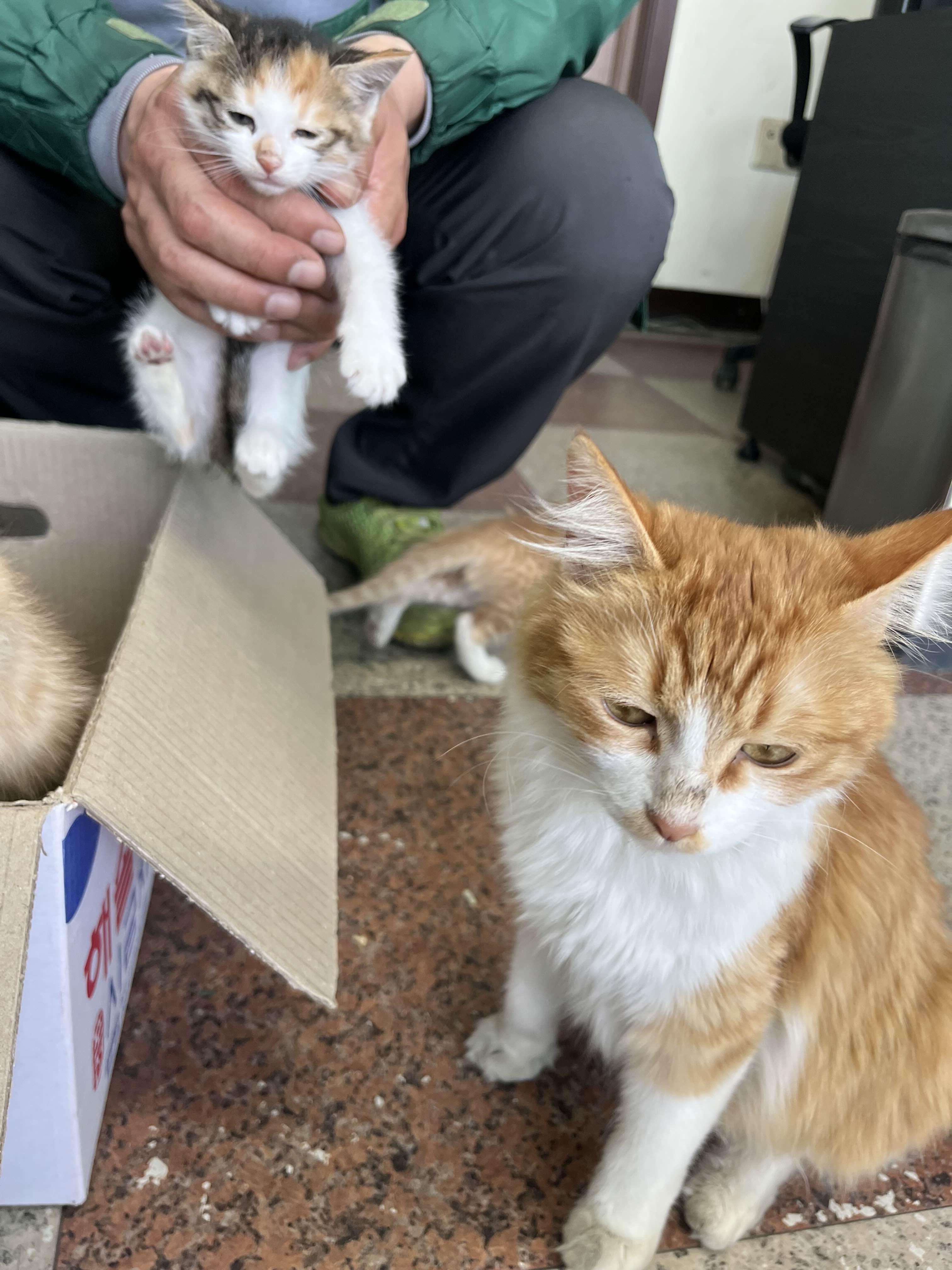 - 아직 한 살 밖에 안된 놈이 마실 나갔다 덜컥 임신해왔다. 아부지 가게 아저씨가 여유가 되서 아가들 출산도 도와주고 육아도 같이 해주셔서 고냥이들이 무럭무럭 잘 자랐다. 털 색은 다르지만 표정은 모녀지간 완전 똑같음.