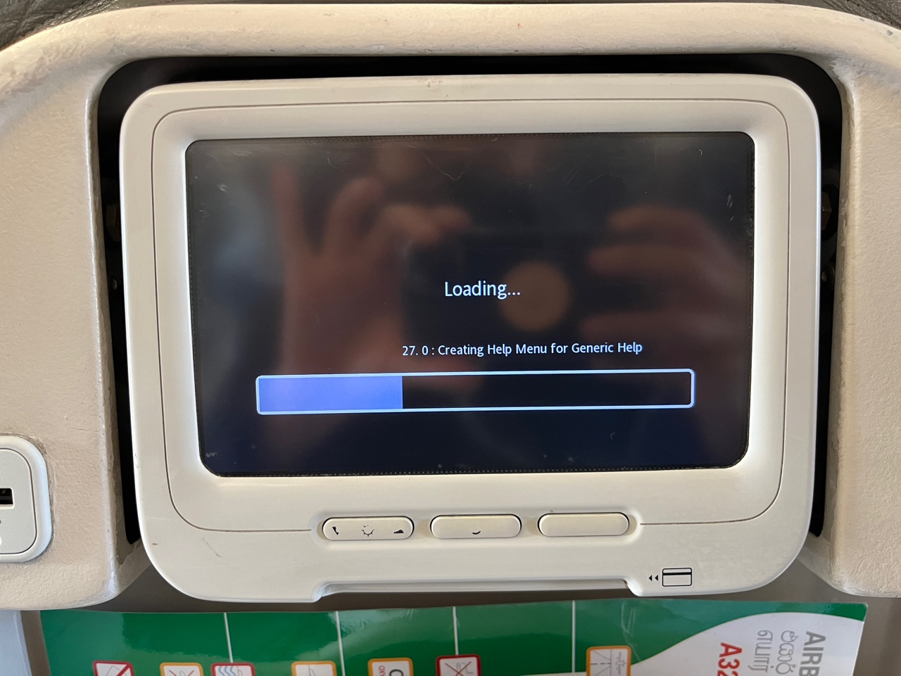 마치 90년대 게임 실행할 때 보이는 로딩중 화면의 기내 TV.