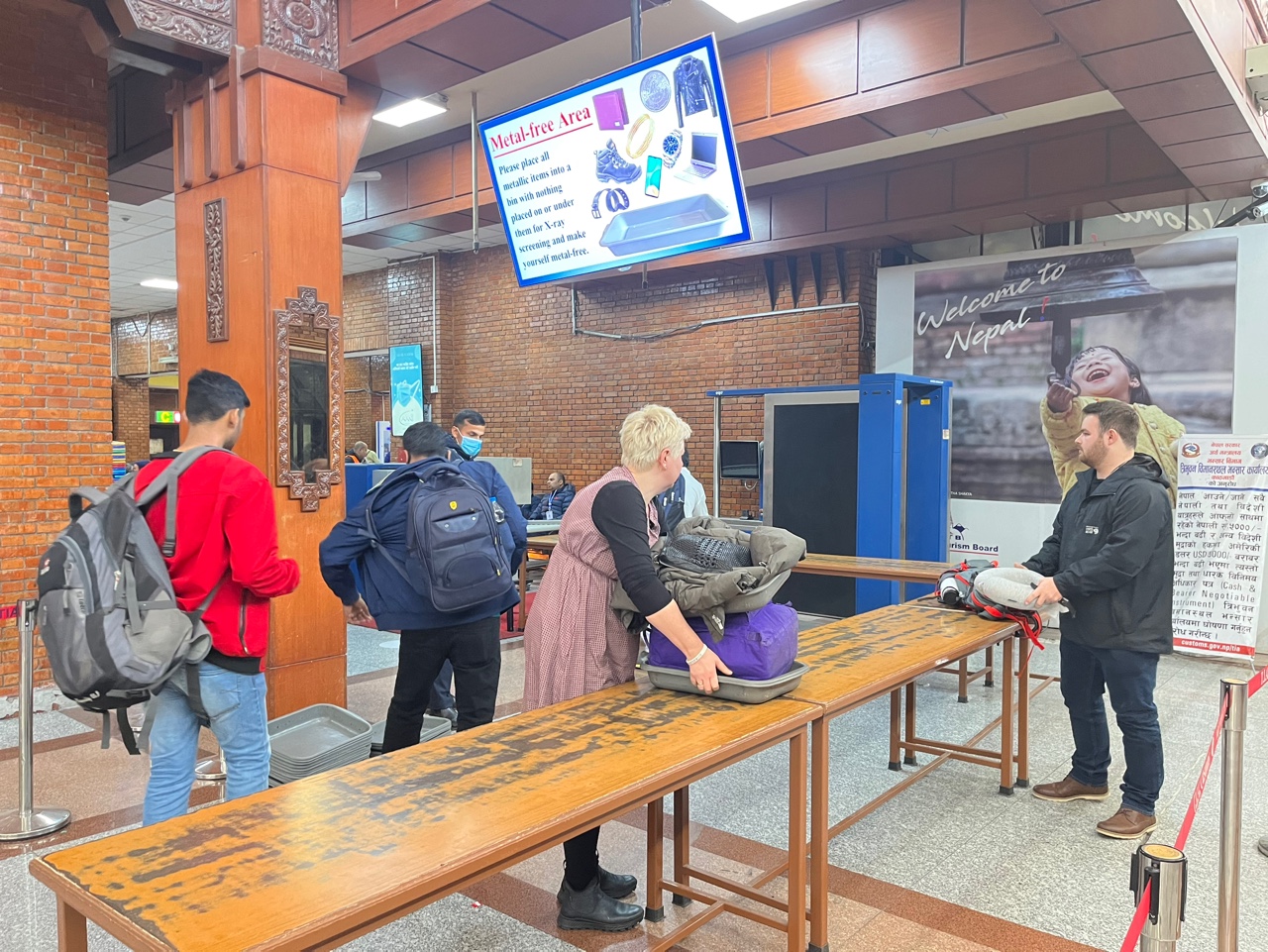 입국 심사대를 지나, 공항 검색대에서 한 번 더 짐을 검사한다.