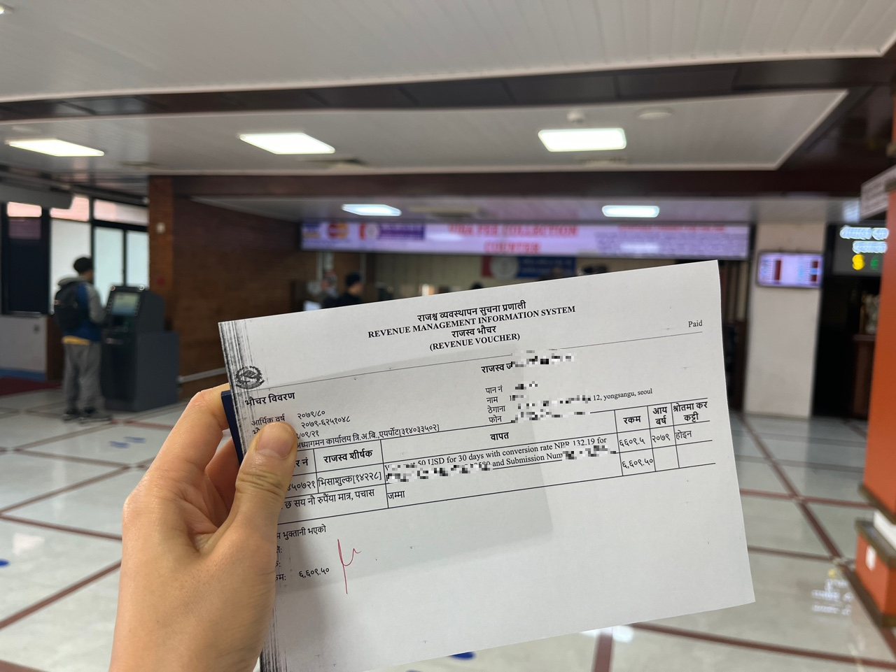 - 카드 창구도 있지만 줄이 길기 떄문에 왠만하면 달러, 원화 or 루피로 현금을 챙겨라.