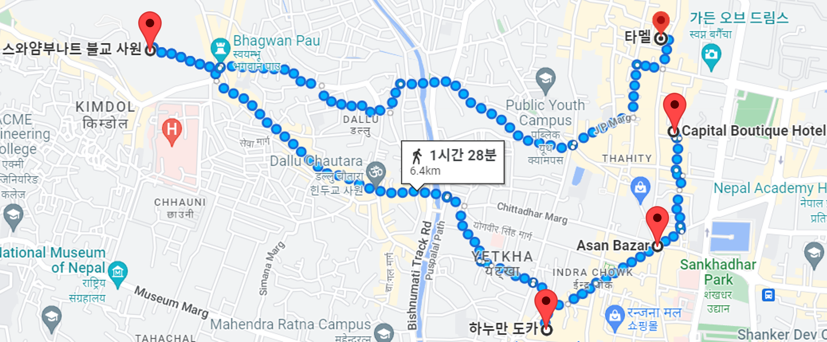 - Asan Bazar ▶ 하누만 도카 + 더르바르 광장 ▶ 스와얌부나트 사원