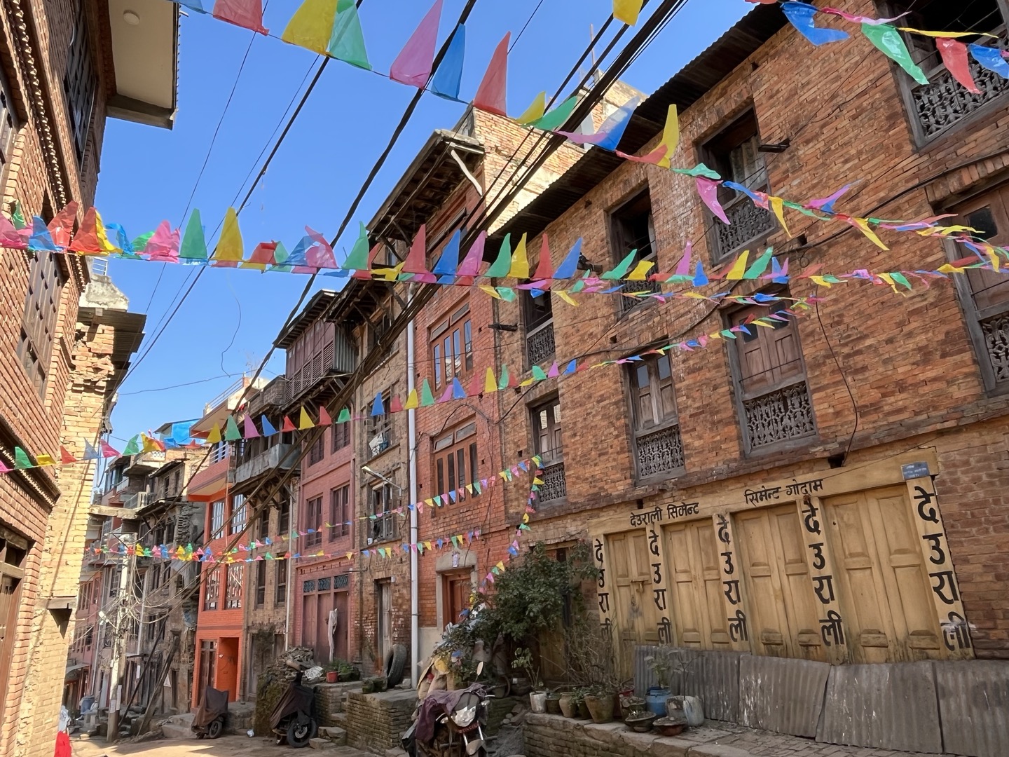 탁해진(?) 입 안을 귤로 가시고 길을 따라 걸었다. 네팔 사원에도 걸려있는 만국기(?)처럼 컬러풀한 깃발들이 건물 사이를 이어주고 있었다. 'Coldplay의 Hymm for the weekend'가 생각나는 순간.