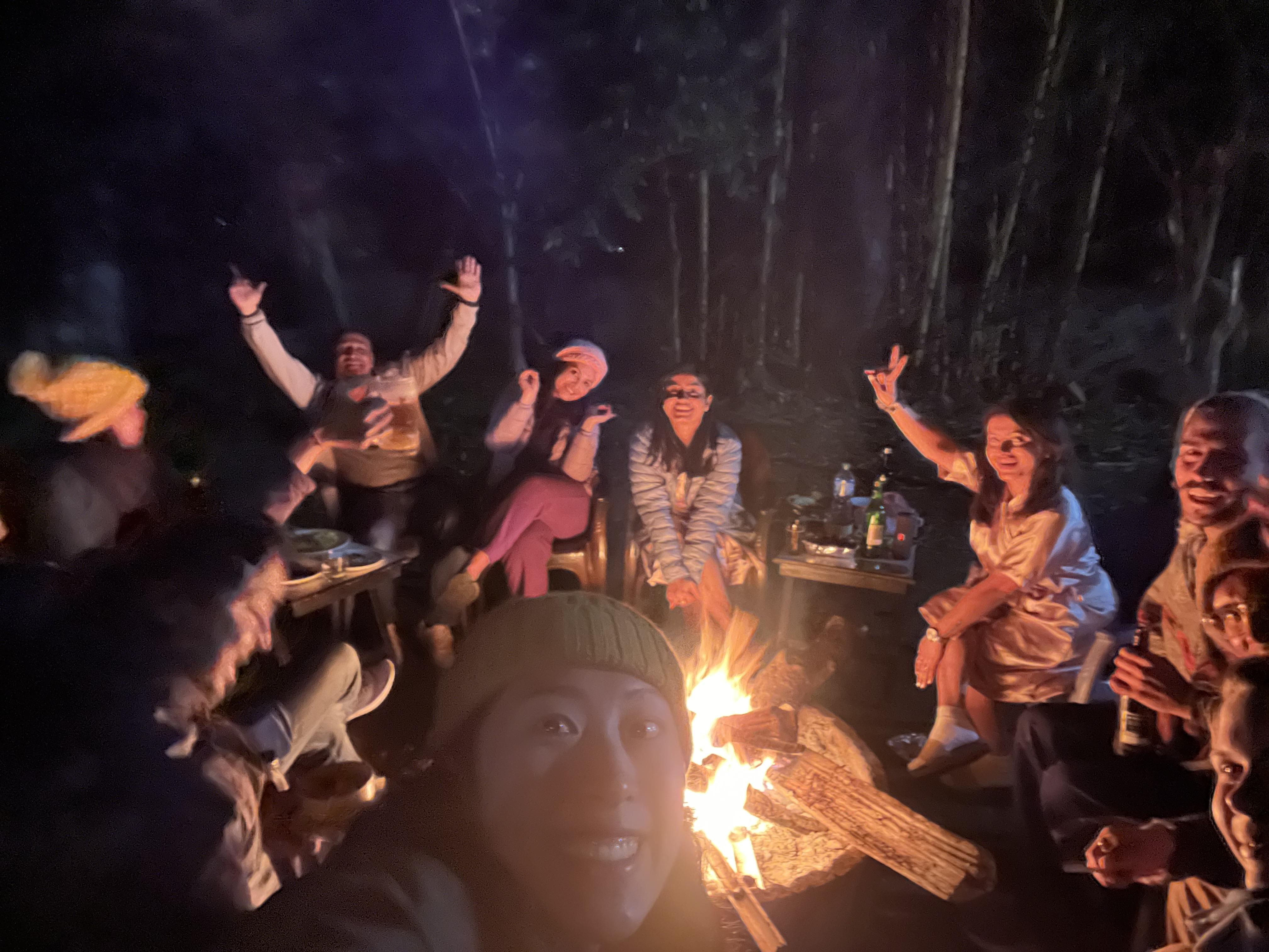시간이 늦어지며 사람들은 한 두명 씩 방에 들어갔고, 남은 건 나와 Nile 그리고 Daniel. 우리는 호텔 바가 닫기 직전 맥주 한 병을 더 사와서 불을 쬐며 이야기를 했다. (정확히 무슨 얘기를 했는지는 서로가 기억 못함) 일부 기억 나는 건 Nile이 요가 선생님이라는 이야기를 하자마자 저 흙바닥에서 서로 요가 배틀이 펼쳐졌다는 것. 나도 아주 기초 수준이지만 요가를 수련하고 있는 터라, '차루랑가' 등 아는 자세를 얘기하자마자 바로 바닥에 엎드려 요가를 했다. 나중에 Nile은 흙바닥에 머리를 대고 물구나무를 섰다^^. 그리고 이 미친 친구들은 나와 새벽 2시까지 파티를 즐겼고, 이후에도 네팔을 떠날 때까지 4번 이상 만났다. 진짜 나의 가족이 된 친구들.