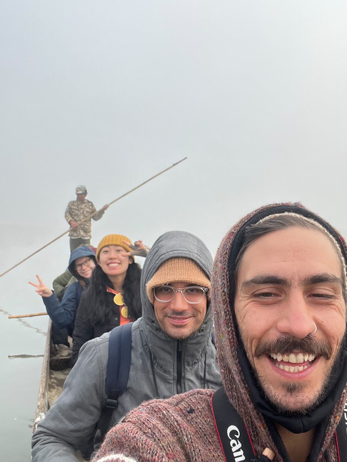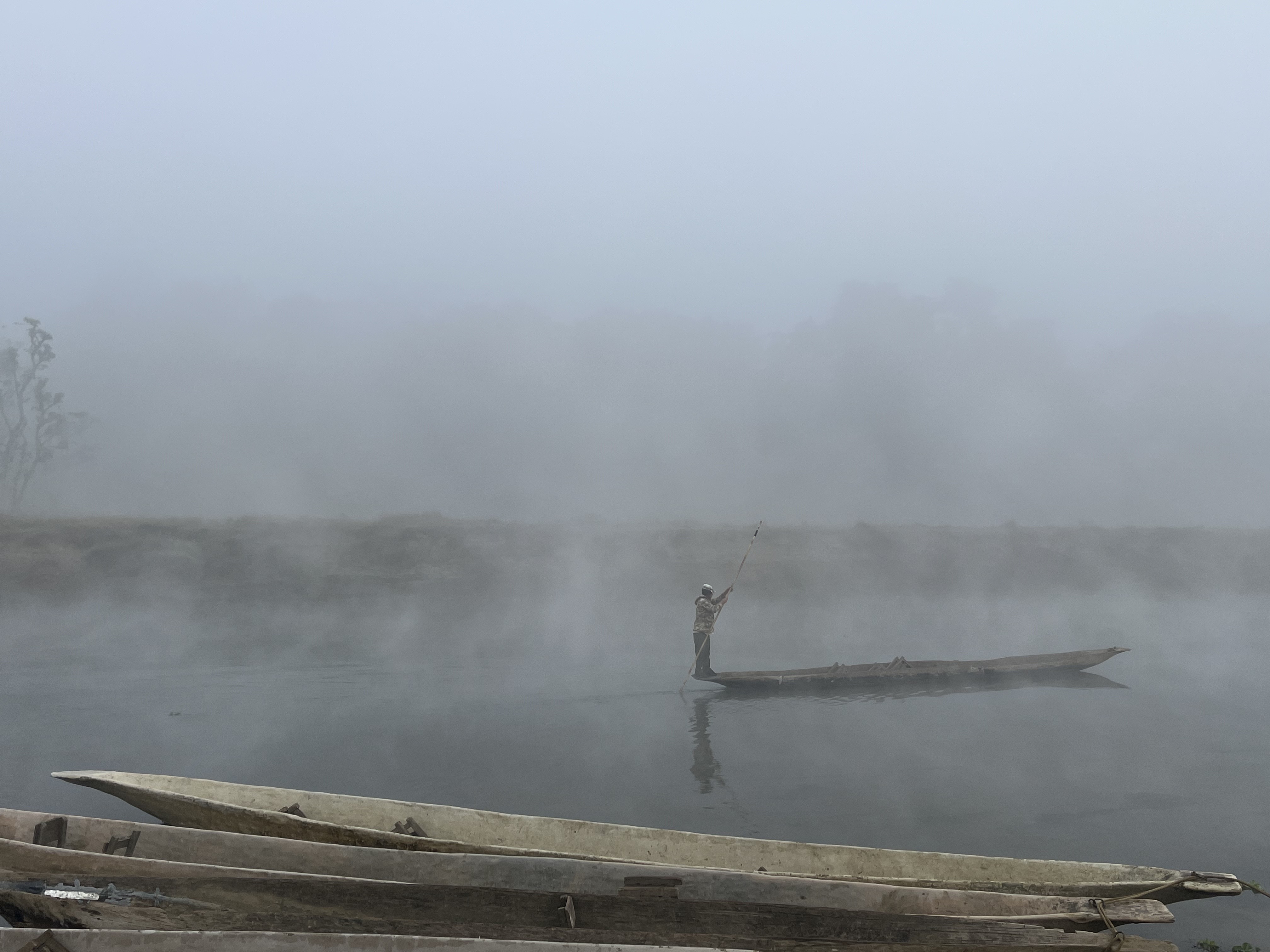 지프차를 탈 때도 안개가 자욱했는데, 강변에 오니 더욱 심해졌다. '배는 뜨겠나.' 생각했지만 뱃사공은 날씨에 전혀 연연하지 않았다. 사람이 모이니 Babu가 손짓을 했고, 우리는 10인용 긴 보트를 탔다.