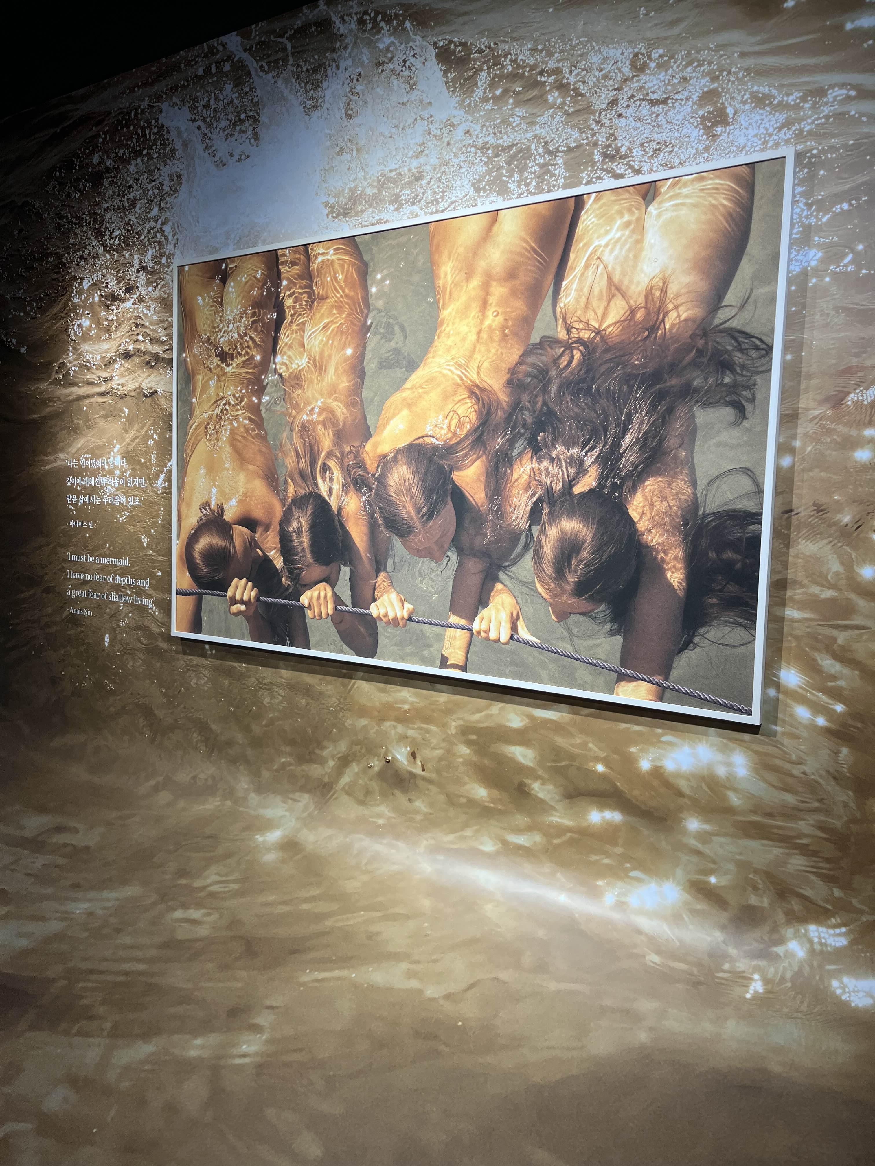 전시된 사진들은 바다 속 뿐만 아니라 숲과 섬 등 여러 자연이 배경이었다. 작가가 담고자 하는 ’자연과 인간이 마주하는 공존의 순간‘이 사진 뿐만 아니라 영상과 미디어아트로 전시되어 있었다.