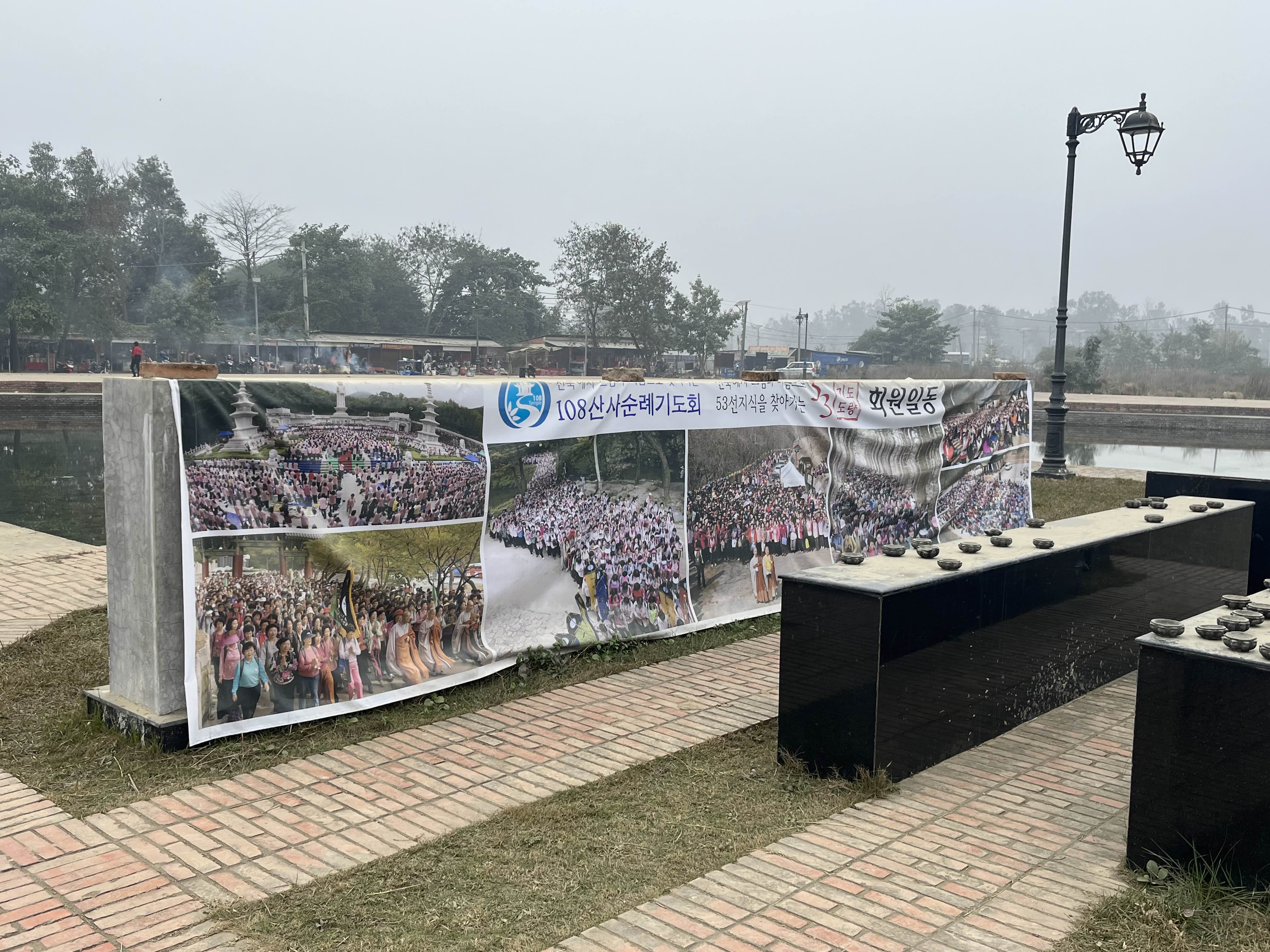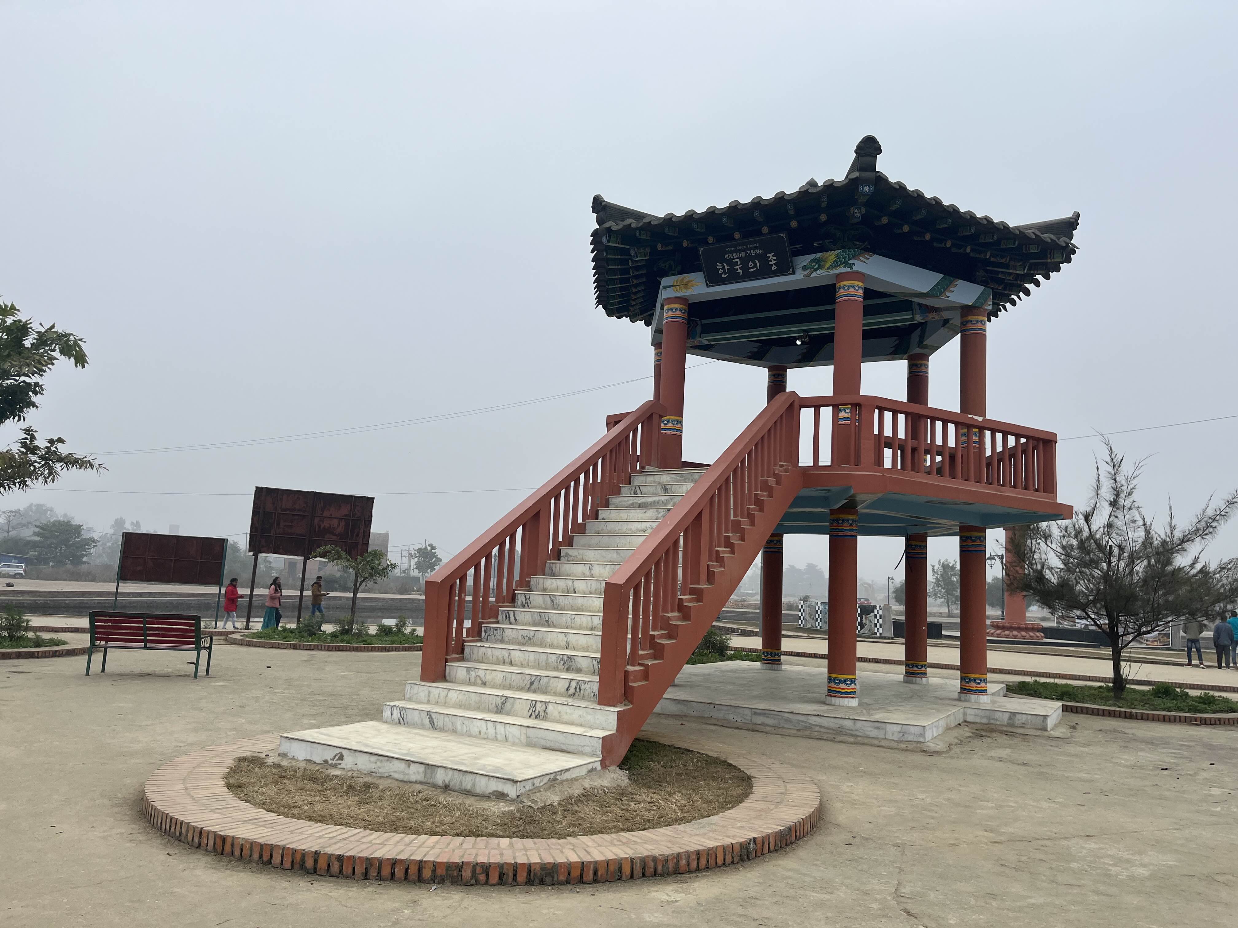 한국 불자분들이 와서 세우신 정자... 정말 뜬금없이 위치하고 있어 굉장히 당황스러웠다. 불교라는 종교에 매우 중요한 곳이지만, 거기에 구지 민족적인(?) 걸 남겨놓을 필요가 있었을까. 저렇게 플랜카드까지 걸어놓은 걸 보면 ‘한국인이 했다.’ 라는 과시욕도 있으셨던 것 같은데...