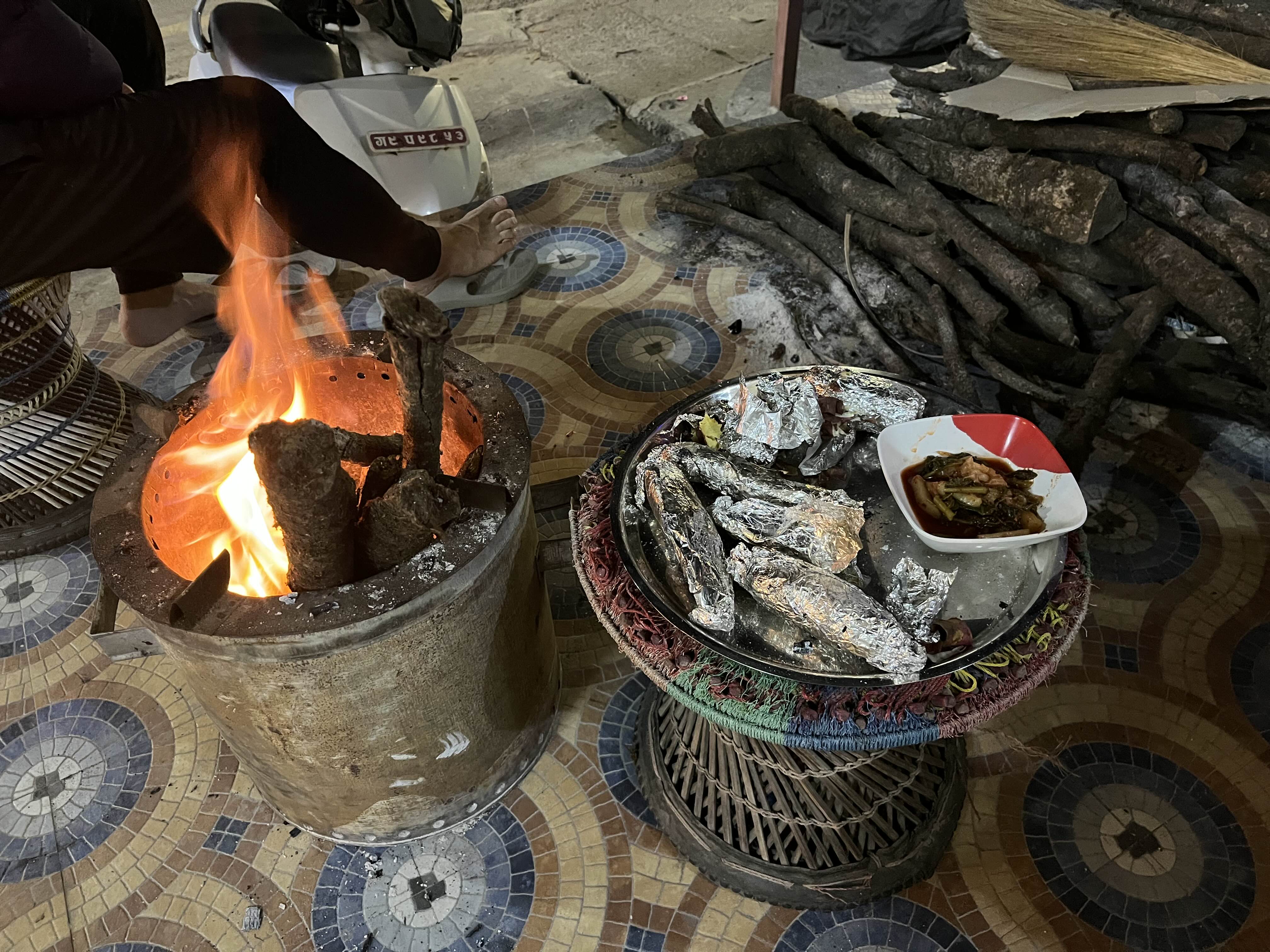 그 때 보이는 화로. 그리고 사장님의 한 마디. “고구마 먹고 가요. 김치도 있어요”