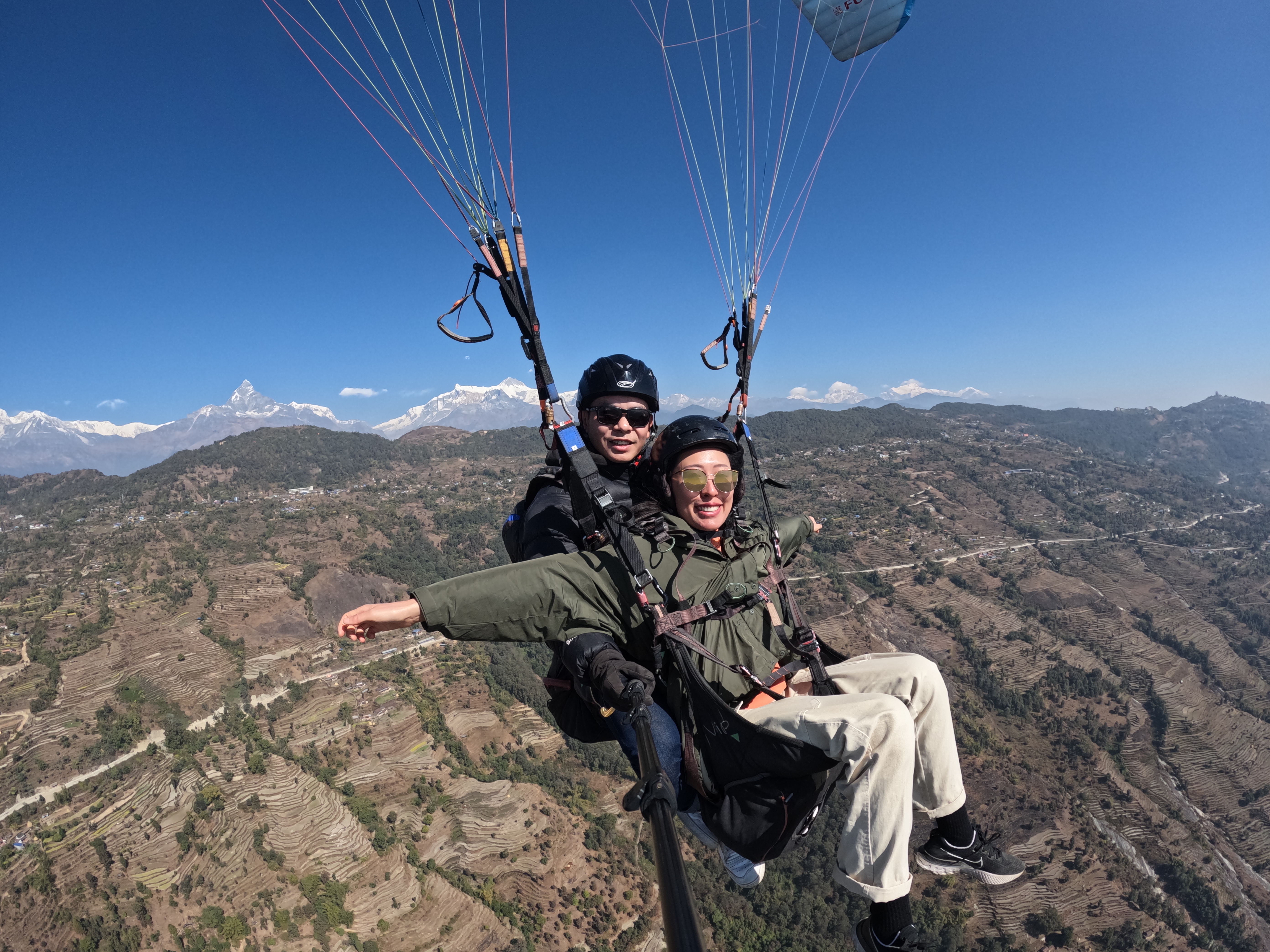 *안나푸르나를 배경으로 하는 패러글라이딩