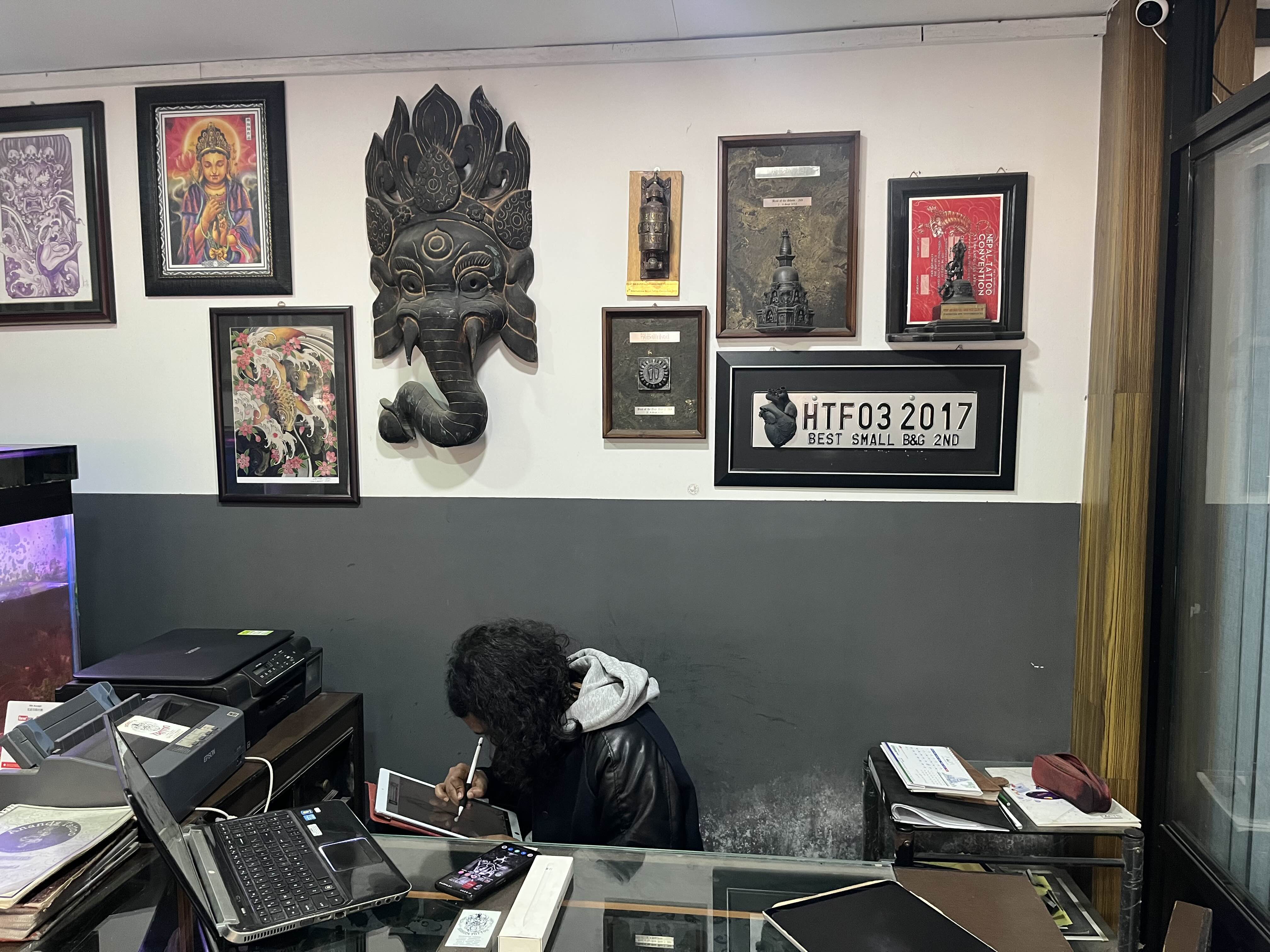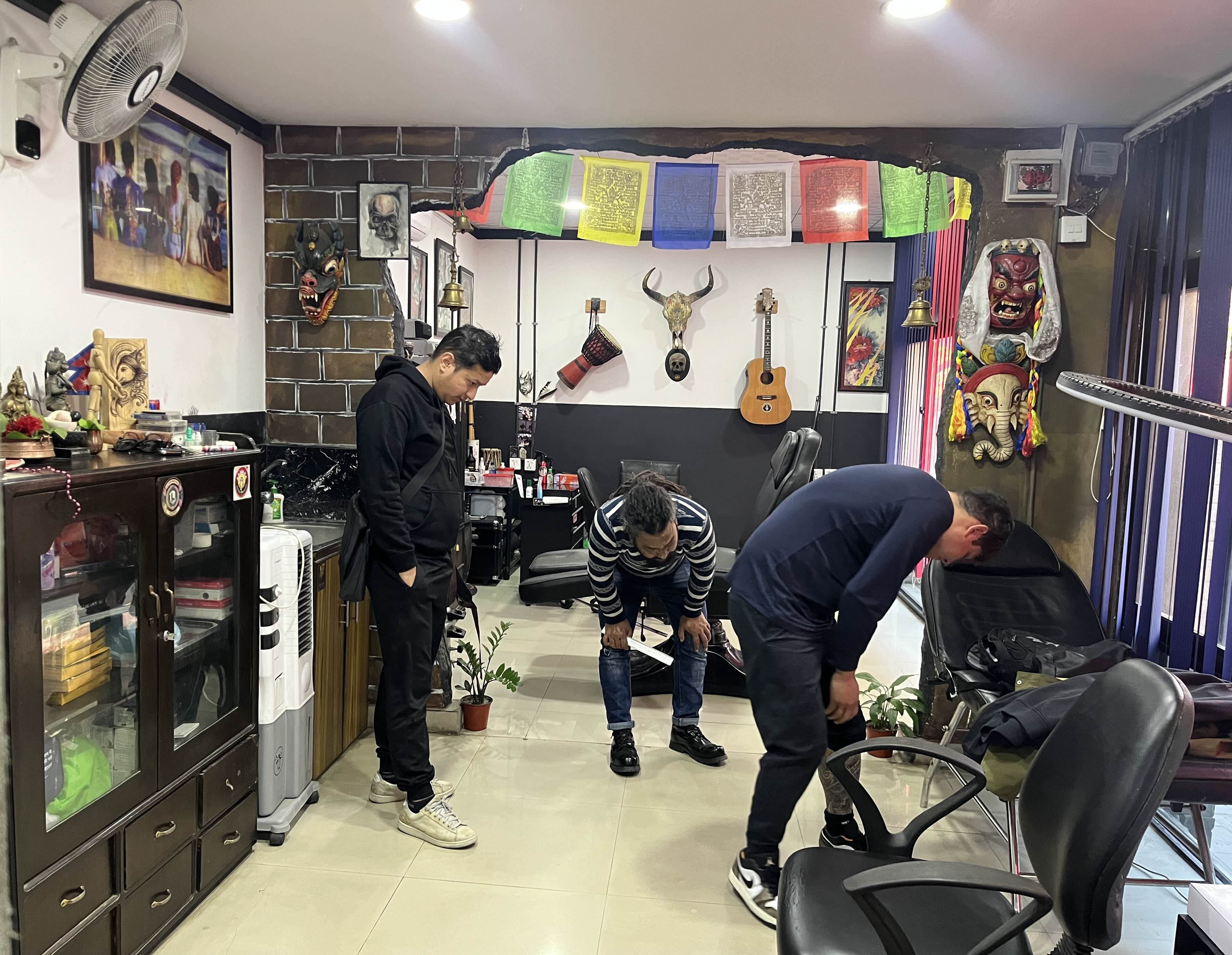 포카라에는 타투샵들이 많았지만 이곳저곳 견적 비교하기 귀찮았던 우리는 윈드폴에서 먼저 머물렀던 친구가 아는 2곳에 가서 견적을 받아봤다. 그리고 그 중 한 친구가 이미 했고, 가격도 저렴한 Anands' tattoo 샵으로 결정.
