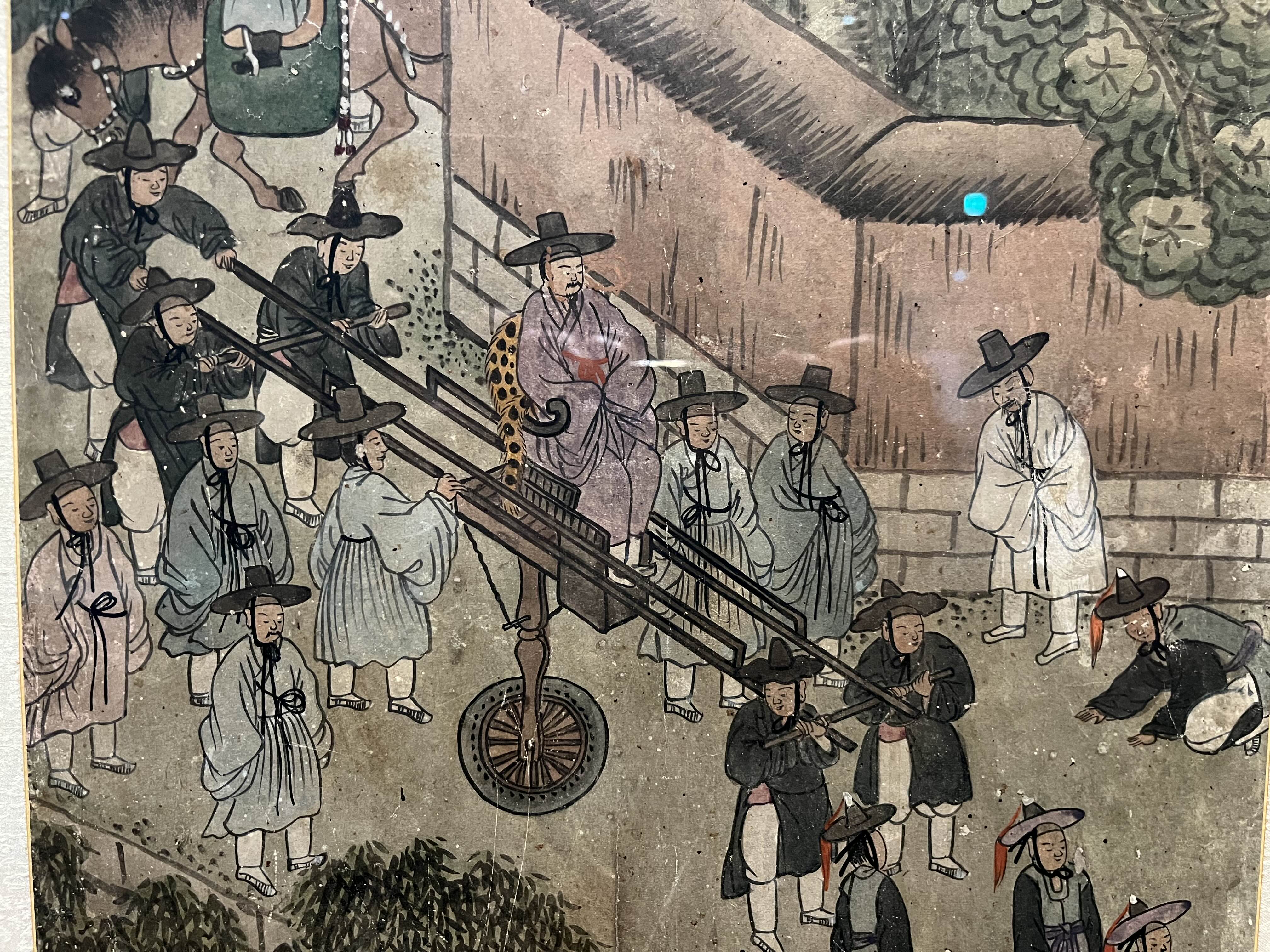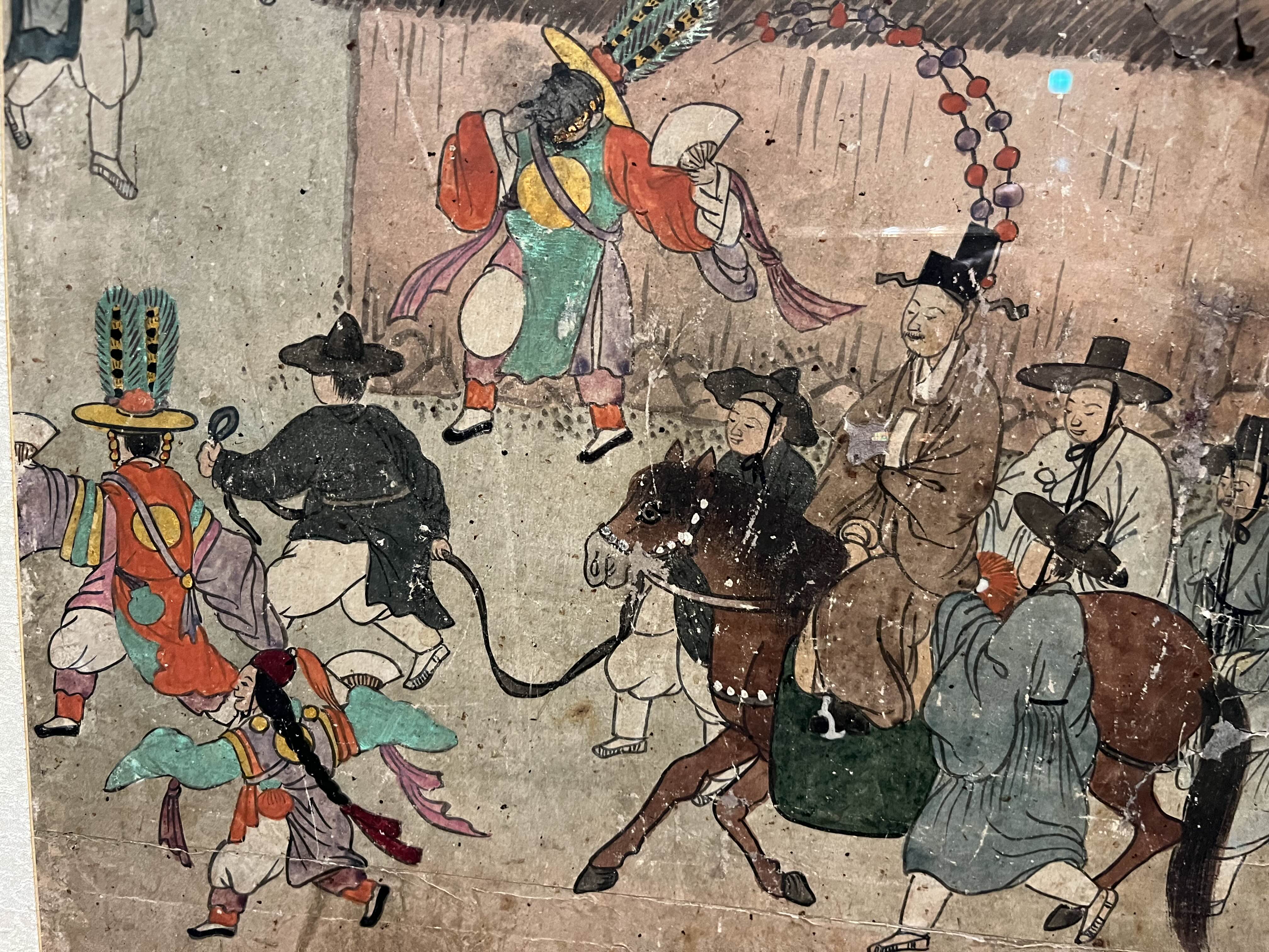 그 중에서 가장 재밌게 봤던 건 인물이 들어간 병풍들. 그 때 당시 조선인들의 생활상이 병풍에 디테일하게 그려져있는데, 이걸 보는 재미가 쏠쏠하다. 집 형태나 옷, 머리, 동물들, 그리고 사람들 포즈까지. 한 병풍에 몇 천명이 그려져있는데 그들의 포즈와 표정이 다 다르다.